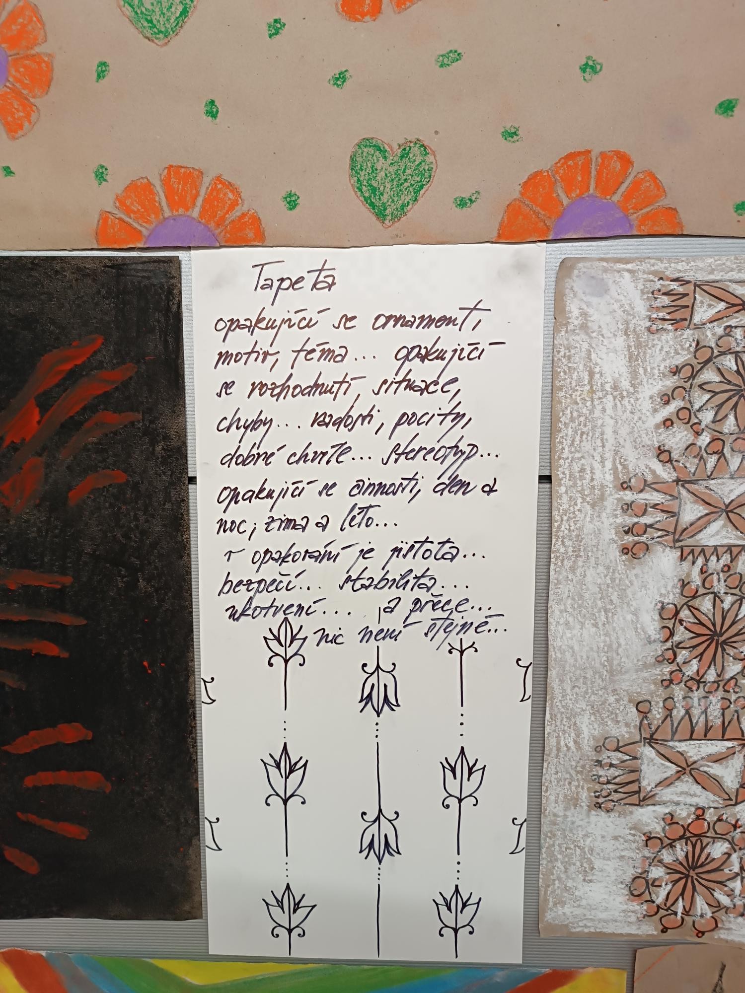 „Všechna vystavená díla jsou průřezem roční tvorby svitavského artateliéru při našem psychiatrickém oddělení a jejich společným tématem jsou duševní prožitky. Kromě kreseb a maleb jsou k vidění koláže a obrazy tvořené kombinovanými technikami,“ uvedla Gabriela Sekerešová, arteterapeutka, která působí ve Svitavské nemocnici. Část vystaveného prostoru byla věnována také plakátům Věry Kosové a Hany Markové.